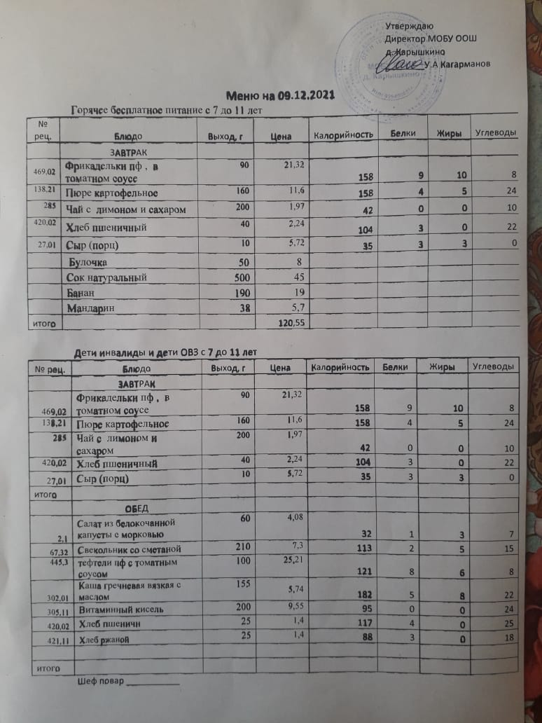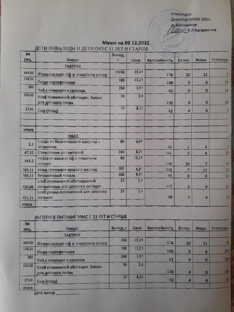 (Меню на 09.12.21 )