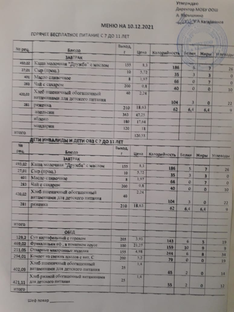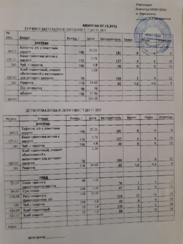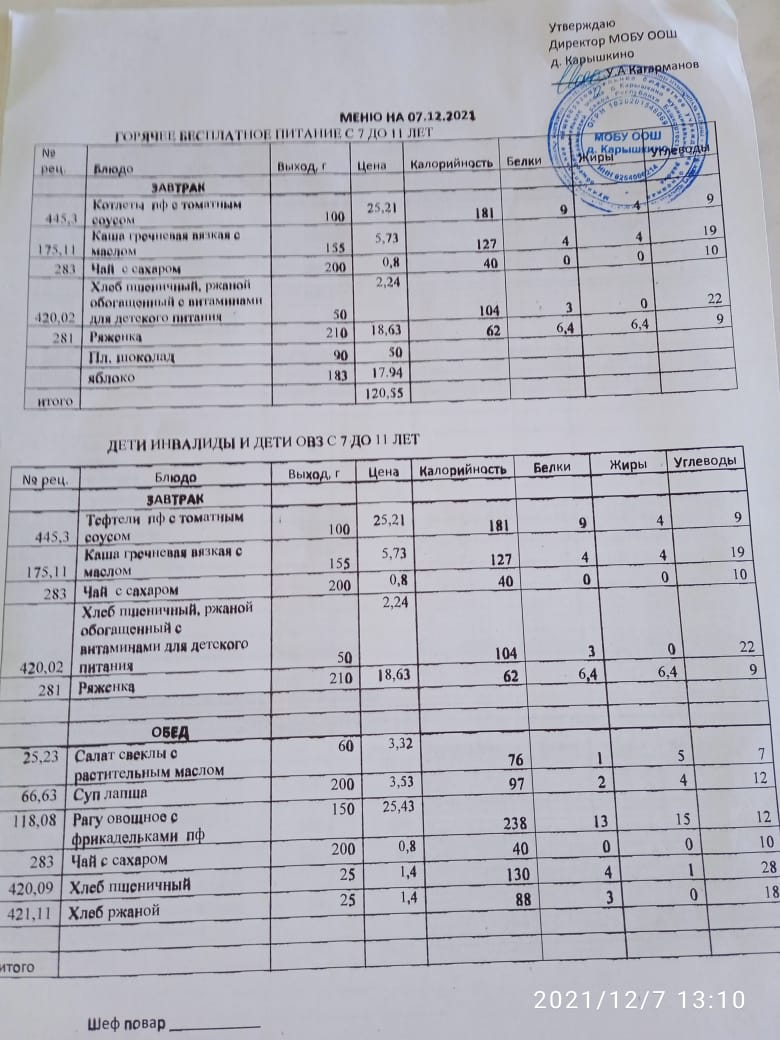 (Меню на 07.12.2021)