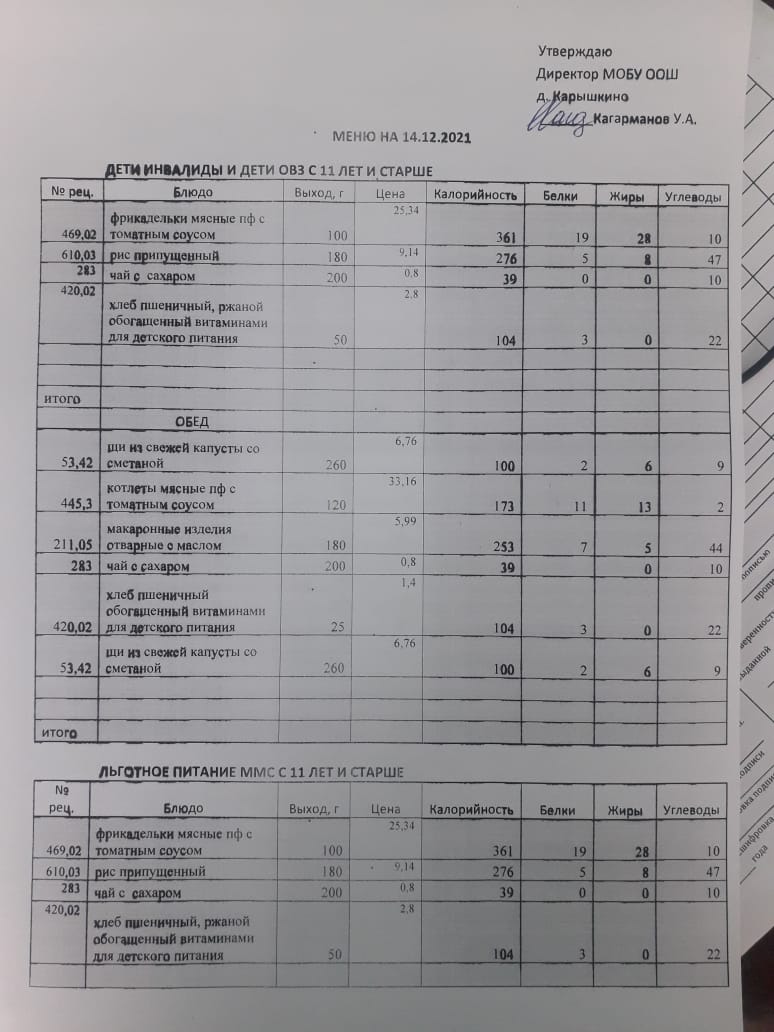 (Меню на 14.12.2021)